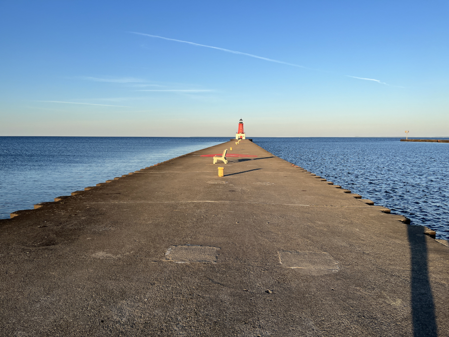 After we got to the hotel in Marinette, Wisconsin, we went to get Culver's for supper. Then Dad and I went to see the lighthouse just across the border in Menominee, Michigan.