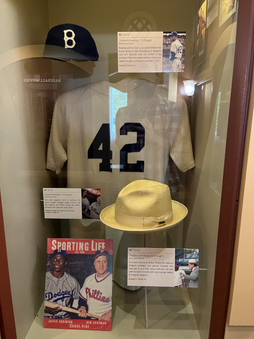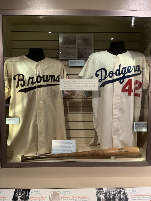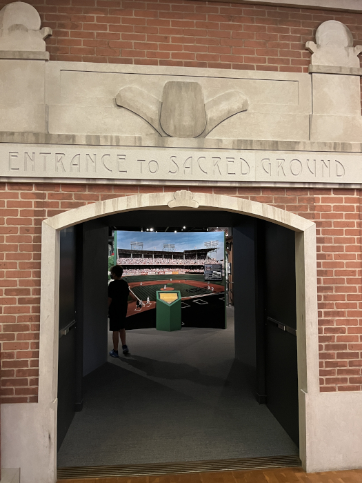 We took a lot more pictures than what I am going to share here. There were so many artifacts from baseball history - like all seven hats Nolan Ryan wore when he pitched his no-hitters, and the bat Hank Aaron used when he passed Babe Ruth for most home runs. And the plaques...we took so many pictures of the plaques...(maybe someday I will add those to this list, or even make a separate post for them). We started in the museum part of the building.