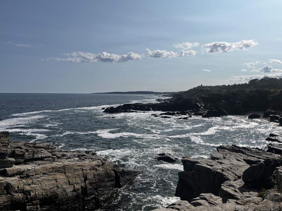 The sea and the rocks by the headlight.