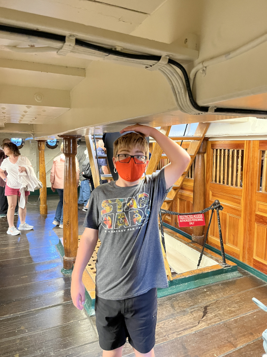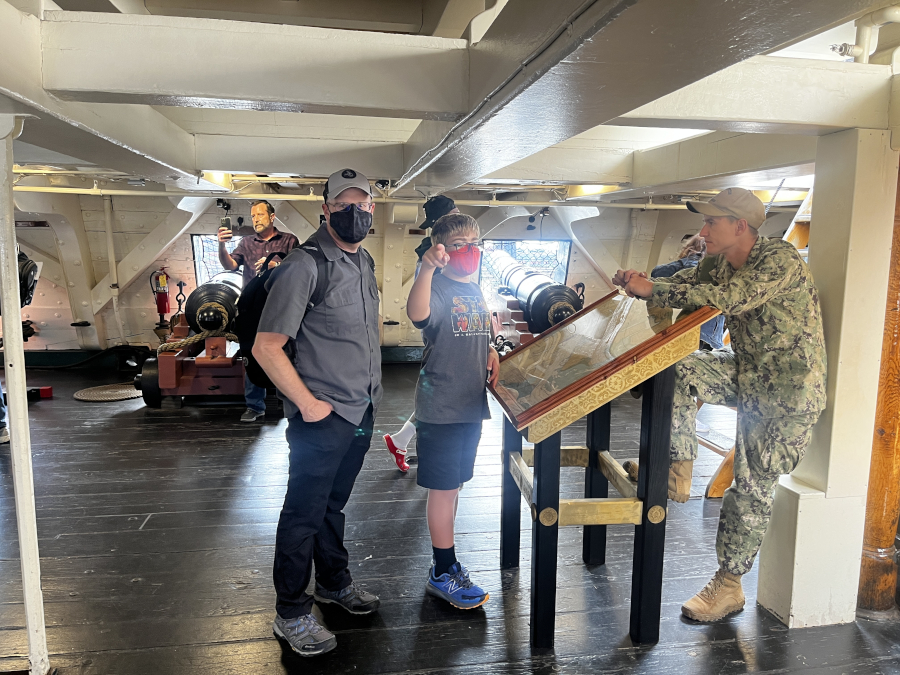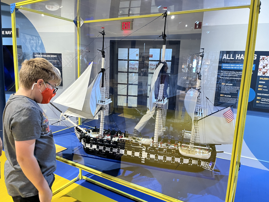 We found LEGO! A model of the USS Constitution build out of LEGO - it was to scale for minifigures, too.