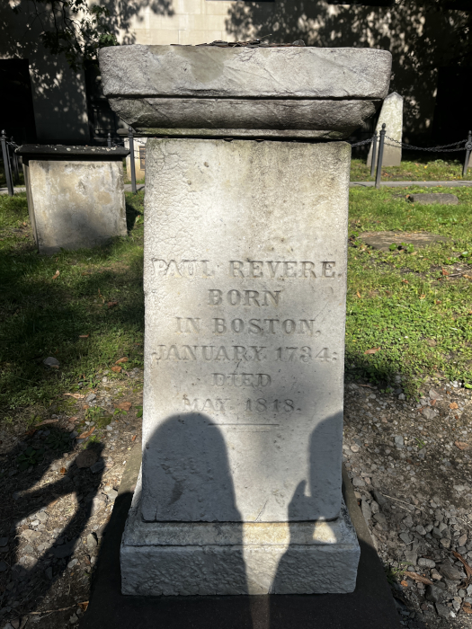 The marker for James Otis. He was the one who came up with the phrase "no taxation without representation." He's not as well-remembered as other founders because he was hit in the head by a redcoat during a protest in 1769 and suffered brain damage. He never really recovered, and ultimately died by being struck by lightning.