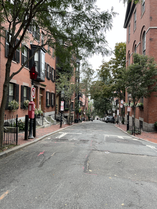 This is Acorn Street, which still has it's original stone surface from the 200+ years ago. It is one of the most photographed streets in America.
