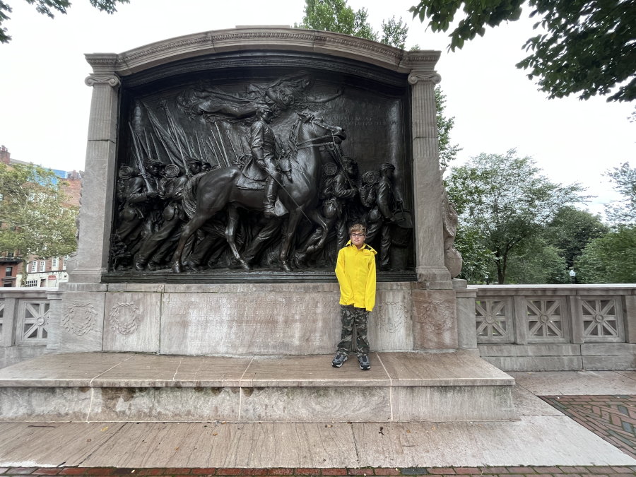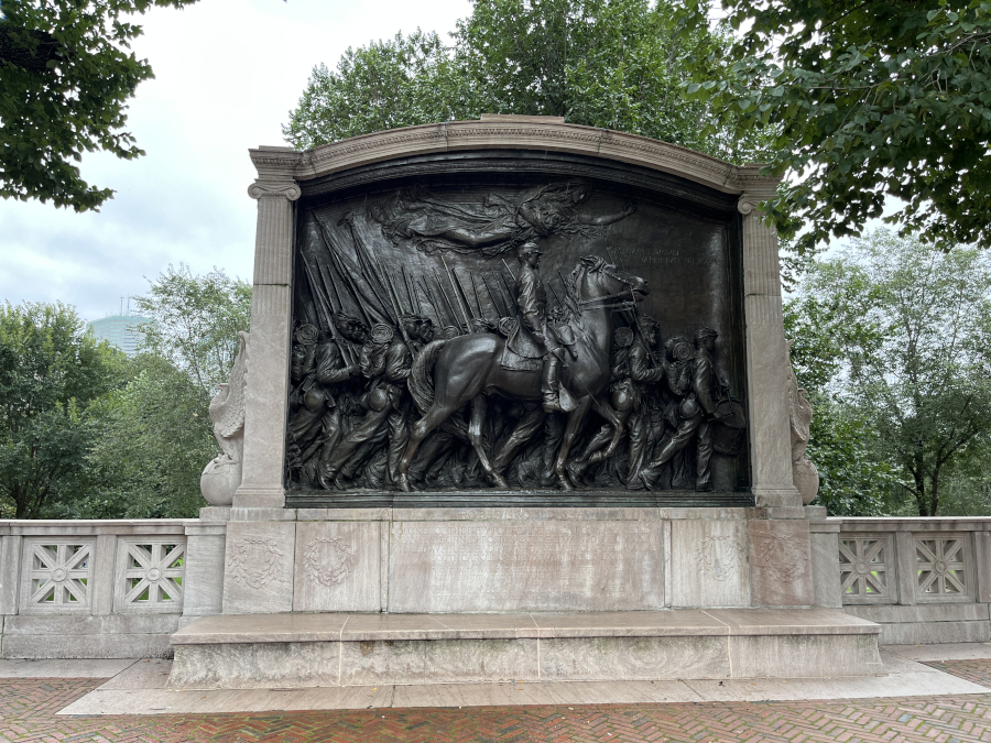 Not the best shot of the Washington statue in Boston Common Garden, but the best we could do under the circumstances.