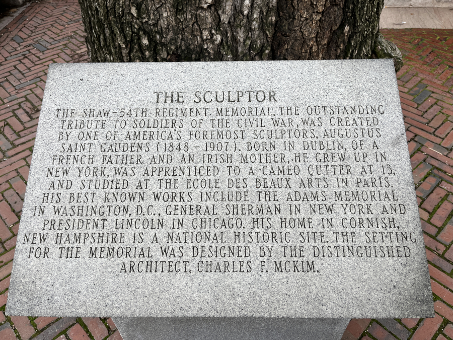 The highlight of the tour for me: The 54th Massachussets Monument. If you aren't familiar with the story, watch the movie Glory. The 54th was made up of 1,000 free black men and runaway slaves who volunteered to fight the Confederacy. They were first black regiment and the best-trained unit in the Union Army. They were also one of the bravest, distinguishing themselves in several battles, including the brutal assault on Fort Wagner.