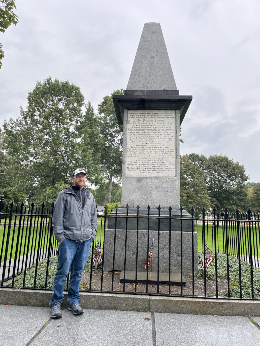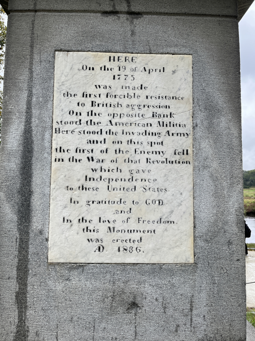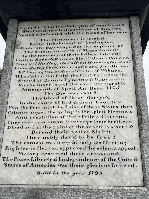 This inscription is in the town square of Lexington, where on April 19th, 1775, the British Regulars opened fire on a small group of colonists, killing seven of them.