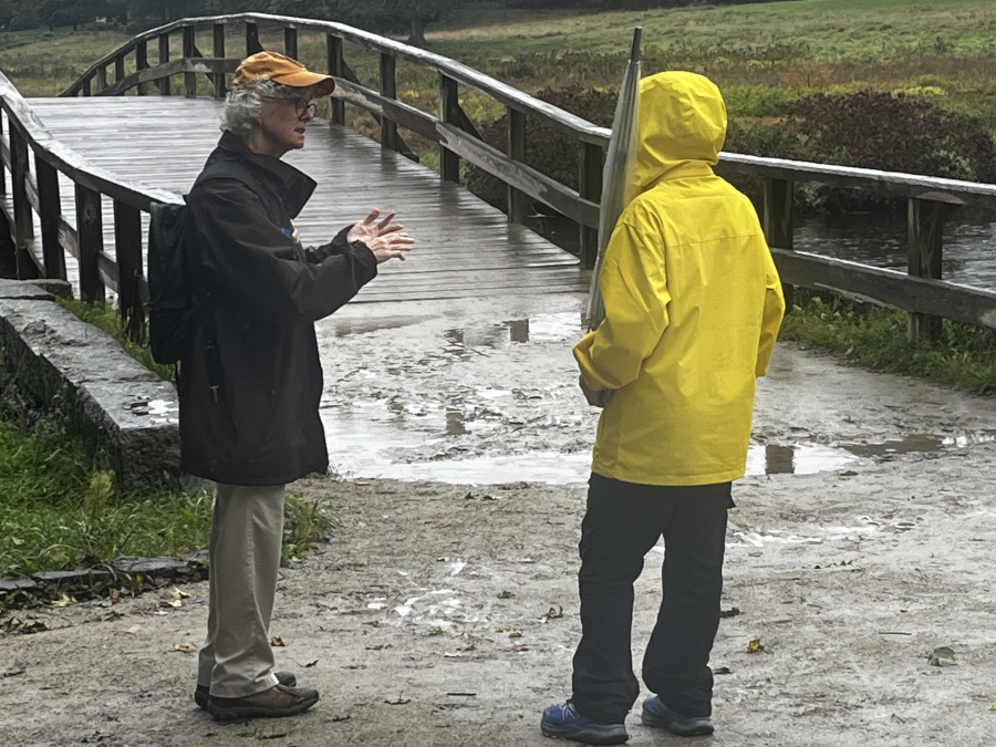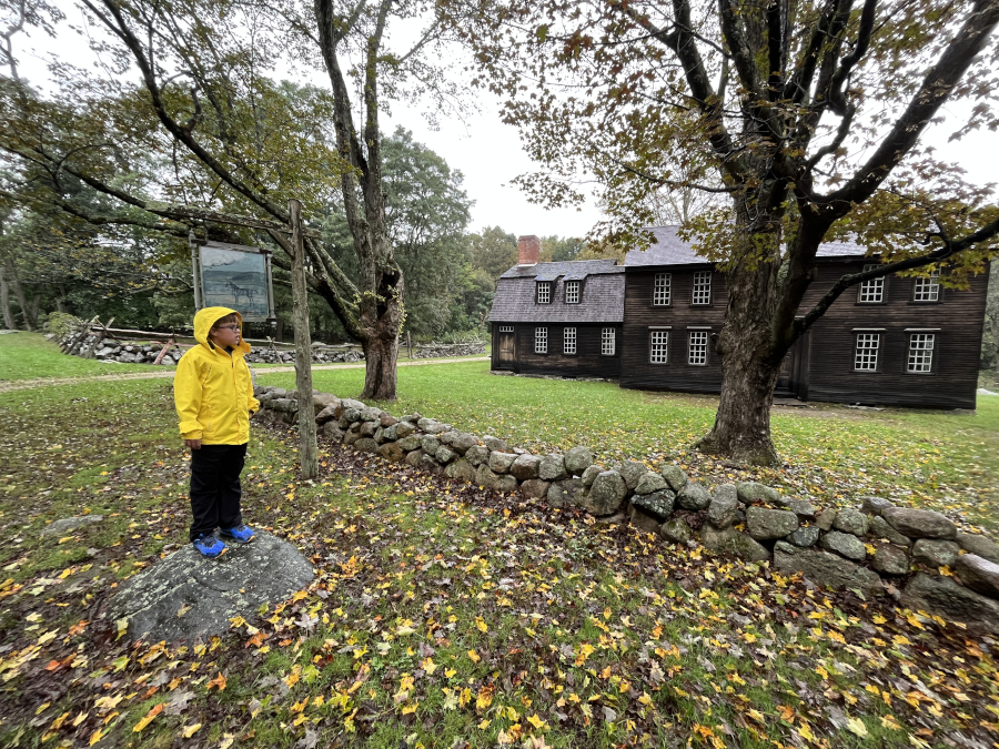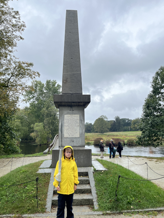 Today we went to the Minuteman National Historic Park to see the Battle Road and the Old North Bridge. We kinda went backwards because we were too excited to get started. And after that we went to Concord to see Walden Pond. It was rainy and cold, and some things were closed beacuse it's Monday, and some things were closed for repairs - but we hopped in and out of the car to see what we could.