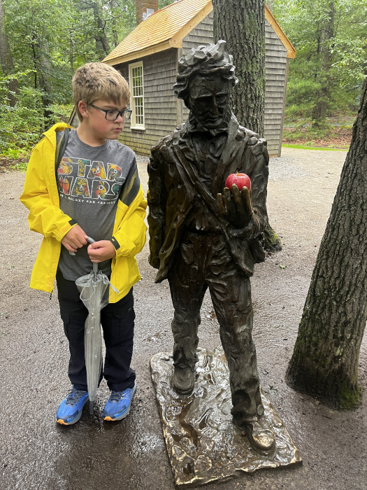 Then it was time to go to Walden Pond. First we stopped at the visitor center, which was full of Thoreau stuff - Mom and Dad were pretty excited.