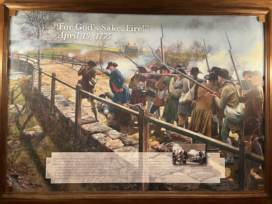 At the Minuteman visitor center we watched a great short film that used multiple screens to tell the story of April 19th, 1775, and what happened in the immediate aftermath as the colonies mobilized for an ongoing conflict with the British Army. They also had some really excellent displays and artifacts from the era.
