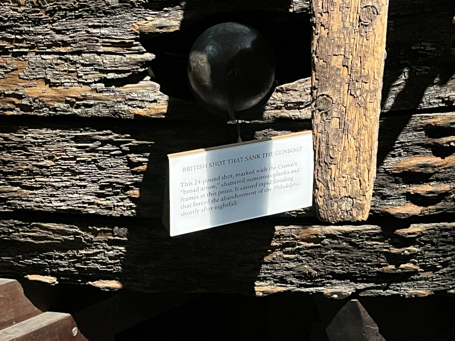 This is the Philadelphia, a ship used by Benedict Arnold in 1776 to delay the British advance down Lake Champlain. It was sunk in 1776 and found in 1935, mostly intact, with it's mast still standing.