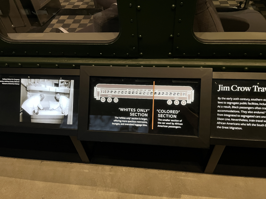 There was a train car in the building to show how different the "white" and the "colored" section of the car were. The "white" section was bigger and nicer, plus they even had bigger bathrooms.