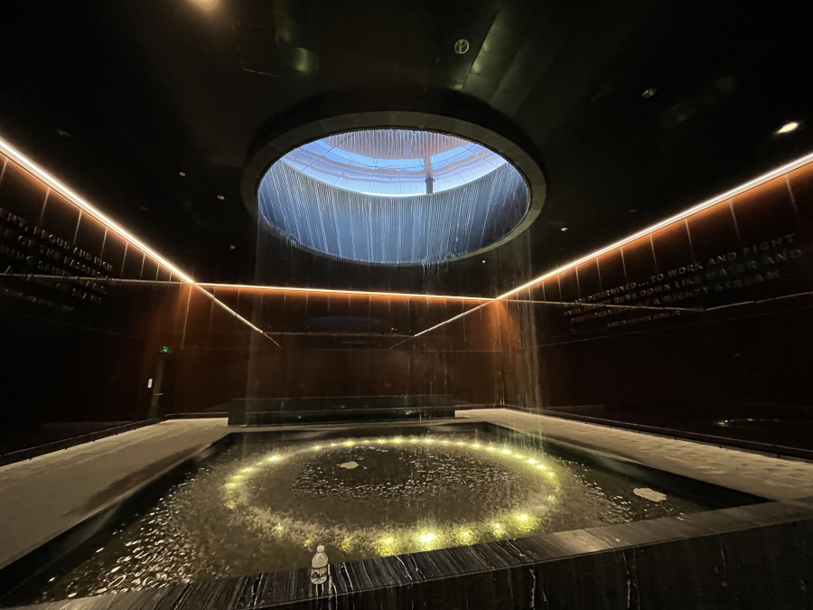 This is the reflection room. It was very nice to sit in here and listen to the water.