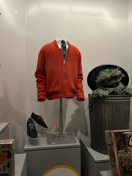 Mr. Rogers's sweater and Oscar the Grouch.