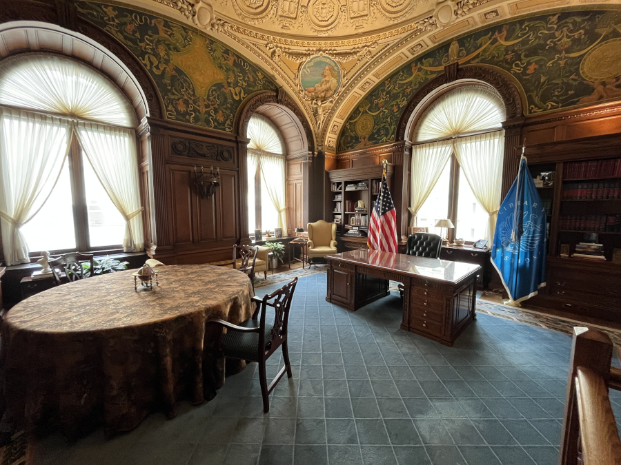 In the room they call the "Crypt," which was originally supposed to be used as a burial spot for the first president. Washington was buried at Mount Vernon, so the crypt is empty.
