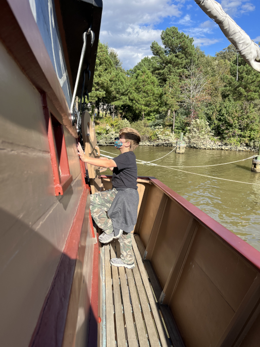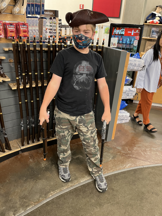 Pretending to be Captain Jack Sparrow in the gift shop while Mom bought our tickets.