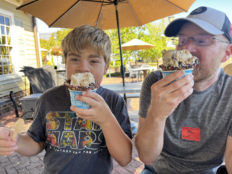 After the ice cream we walked back to the car and did the drive around the various sites of the Yorktown siege. We went to a lot of different site with earthworks, showing where the American and French lines were initially located, and then where they were moved as the siege progressed. Like the other battlefields, it was great to see how the locations fit together in the world. These battlefields are so much bigger than you think they will be. It's not like they could take place in a stadium - more like over the land that mightontain a whole city.