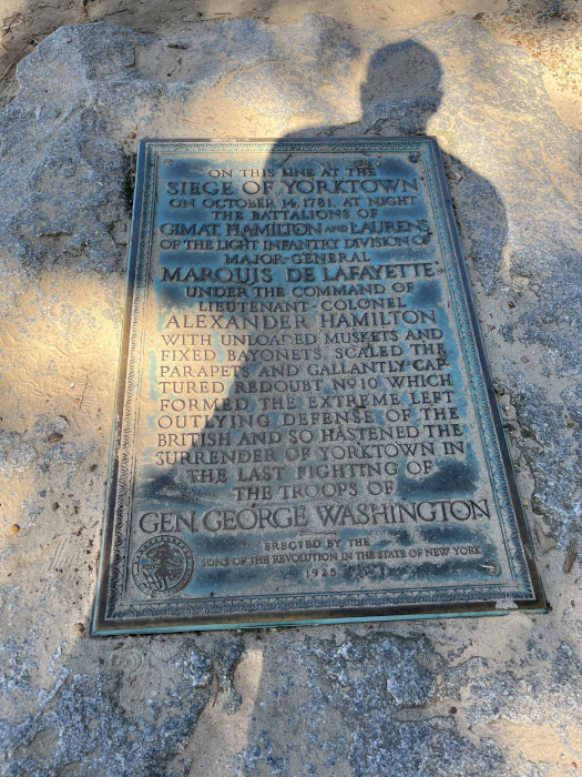 Atop Redoubt no. 9. I suppose it doesn't look like much, but it was exciting to be where it happened. Taking Redoubts 9 and 10 made it possible to move the American and French lines so close to the British that they had little choice but to surrender.