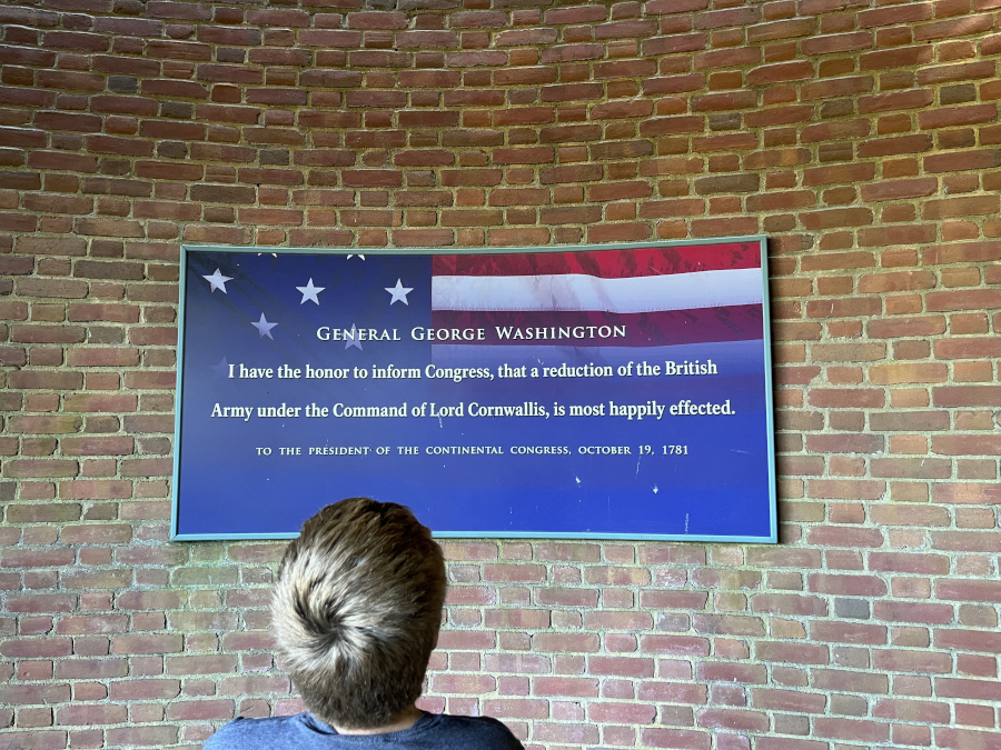 Today we went to Yorktown to see where the siege took place. We started out at the visitor center - which was small, but very cool, and it had some nice artifacts. One of which was the contents of George Washington's tent - which we didn't take a picture of because it was behind glass and in low light to protect the items. But we have pictures to share, don't worry.