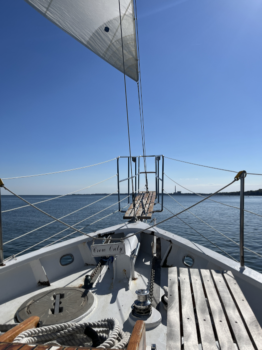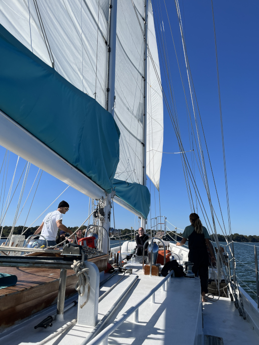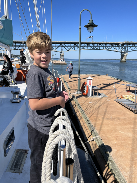 I actually got to give the commands and turn the wheel all the way starboard and hold it until we turned around.