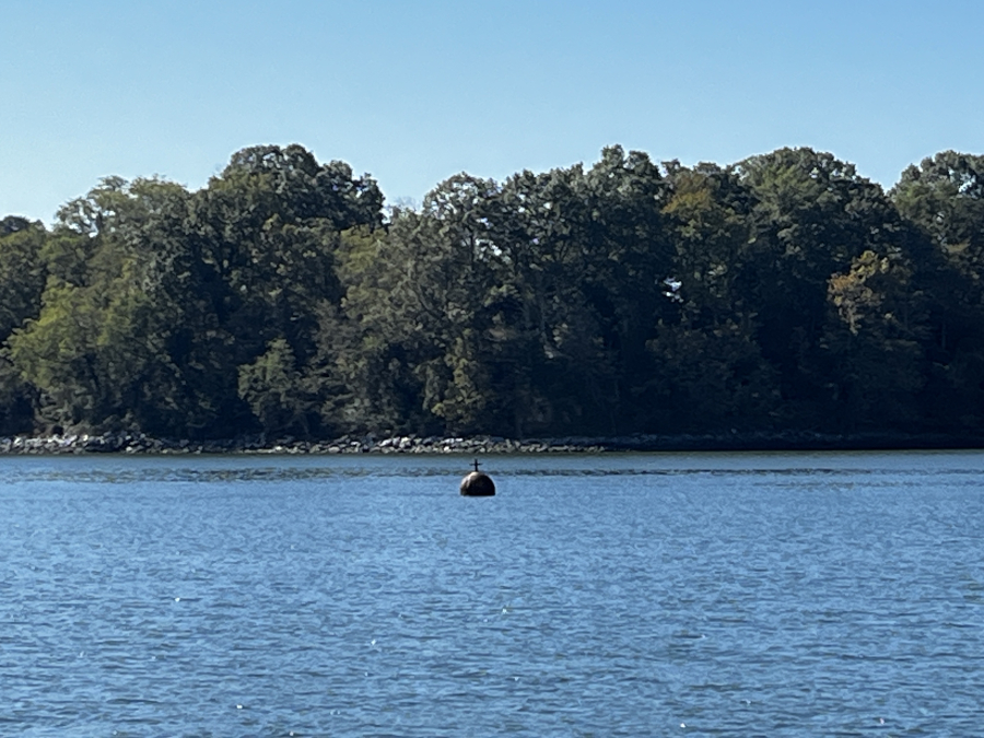 The round thing in the water marks where the British scuttled their ships to make it harder for the French to land troops at Yorktown. The wrecks are still there, so the markers keep modern sailors from running into trouble.