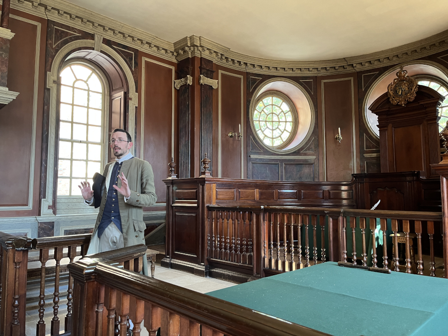 The courtroom - this is where we attended the pirate trial. We couldn't take pictures then, so here's how it looks during the day.