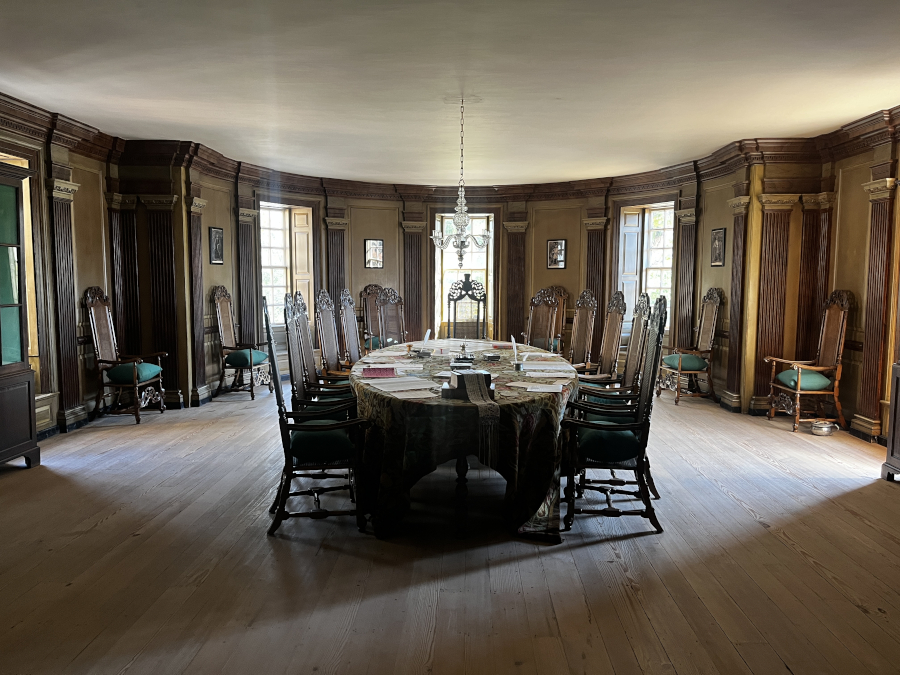 Why a picture of a stairway? This stairway makes a statement of wealth and power - it takes up more space than many houses in Williamsburg, and certainly more than most houses in rural Virginia. Along with the fancy wallpaper, and the rounded window, it shows that the Randolphs are immensely wealthy.