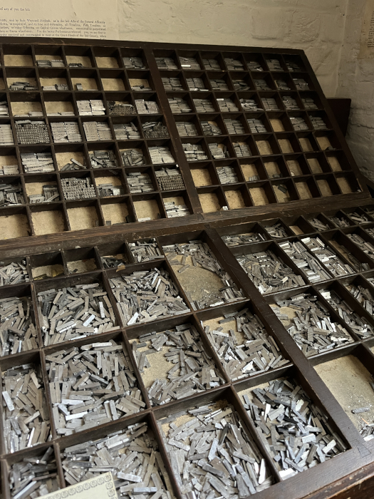 The type - thousands and thousands. The printer said they would have to set 20,000 to 30,000 pieces of type for one edition of the newspaper. All by hand - and some of these pieces are so tiny you have to squint to read them.