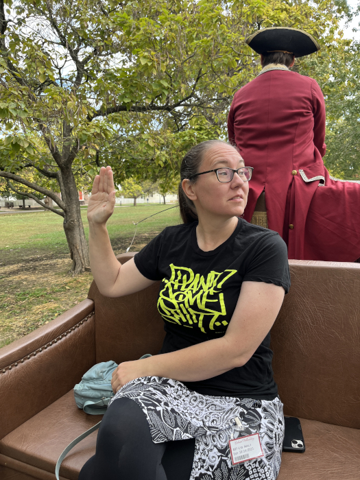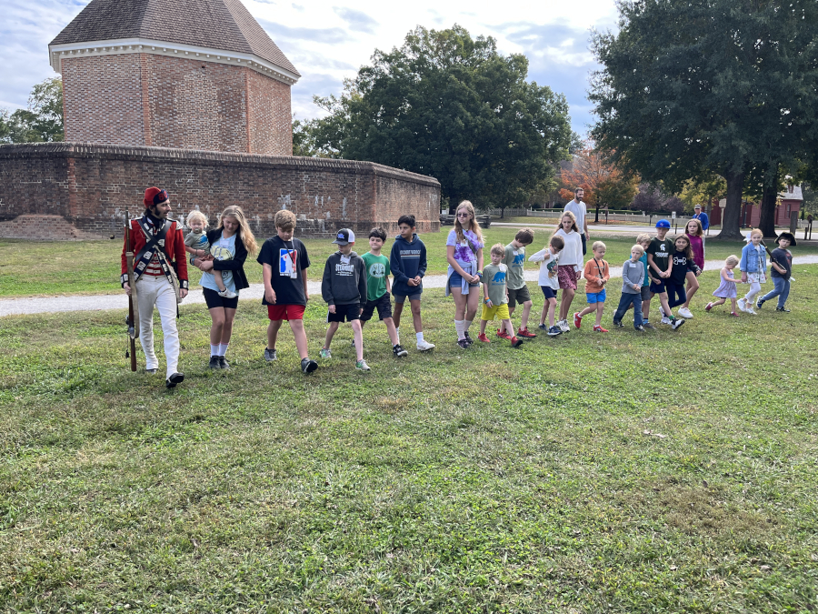 After drills, we talked to Thomas Jefferson for a while. He was really funny - and I answered his trick question correctly. He asked: Who won the American Revolution? And the correct answer was: no one - we are still fighting it every day that we have a representative government.