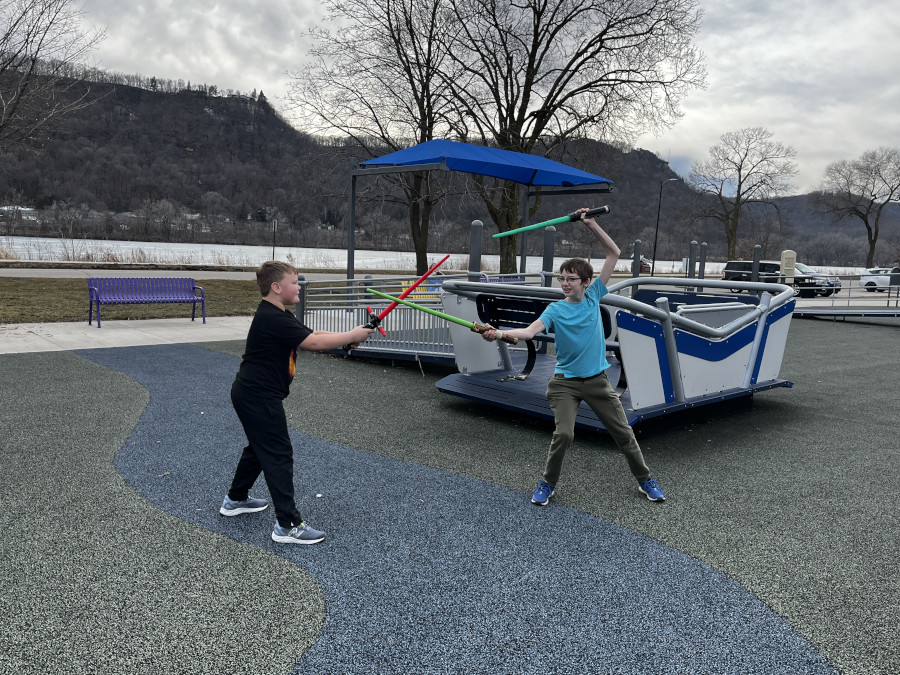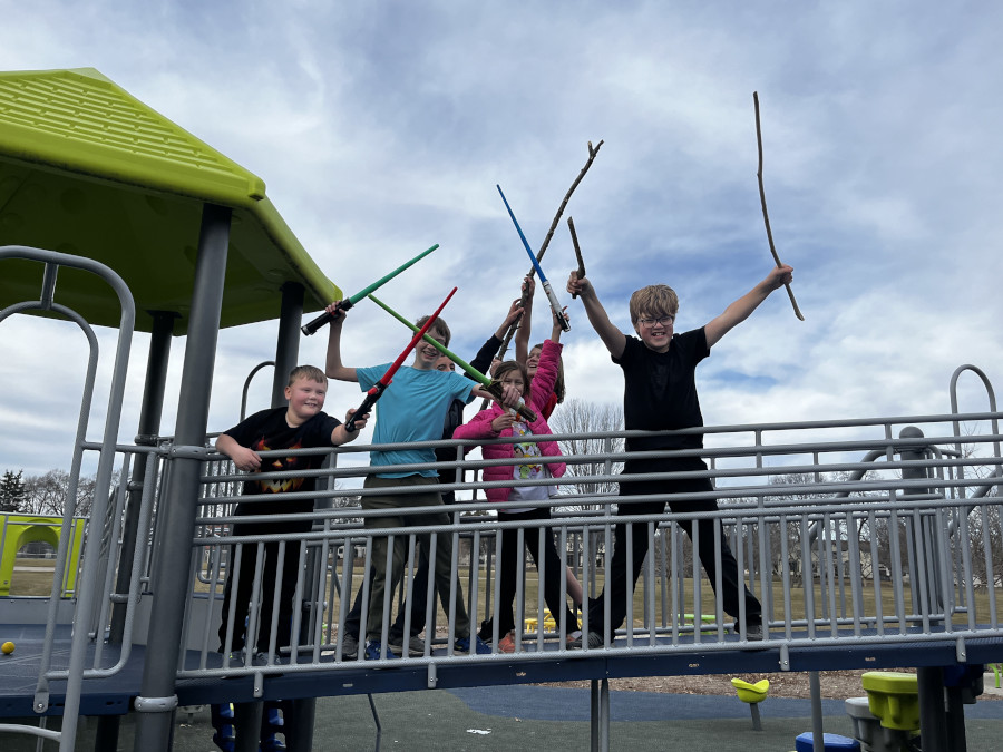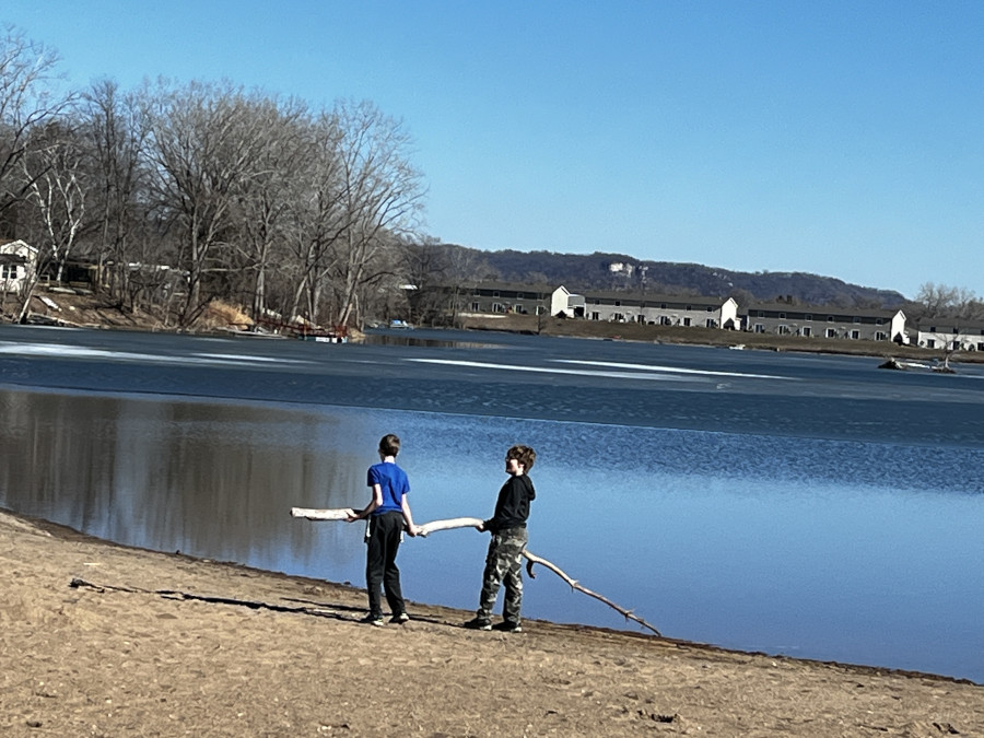 Just Jonathan and me at Recess on Thursday. We found a big stick.