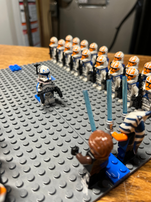 I made a scene from Clone Wars season seven, when Ahsoka comes back and the 332nd has their helmets painted in honor of her.