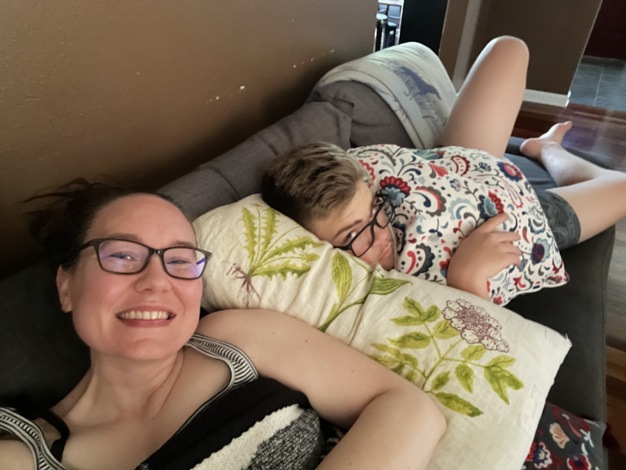 Relaxing on the couch.