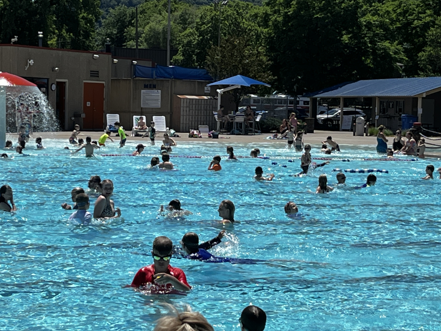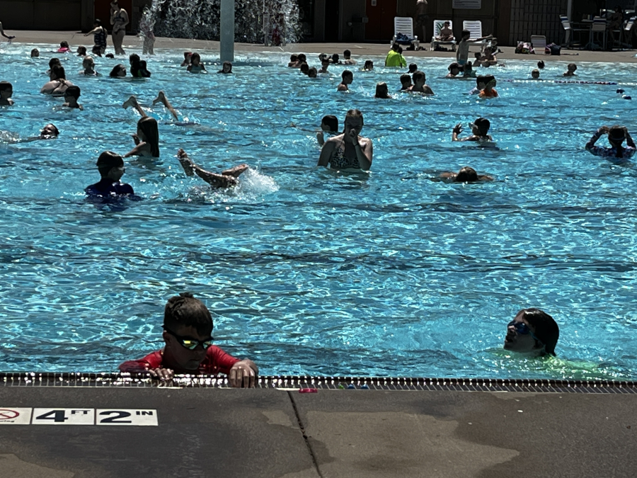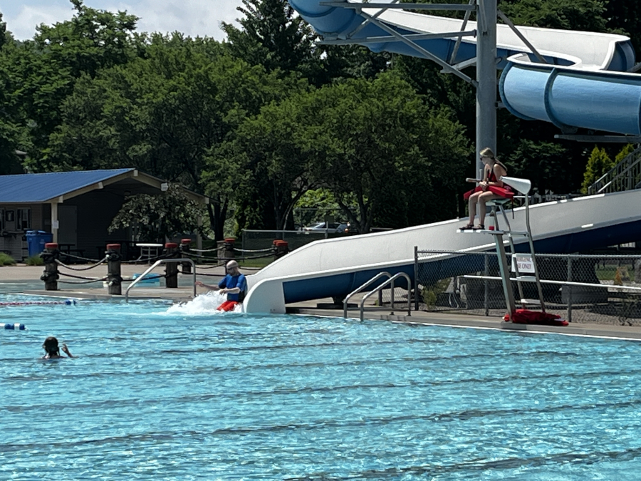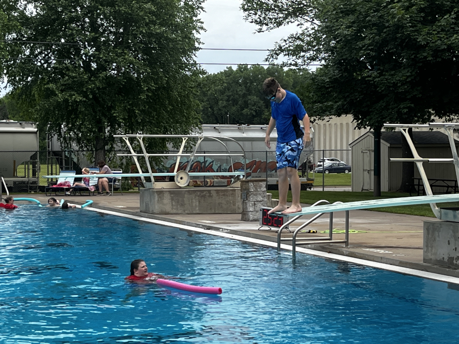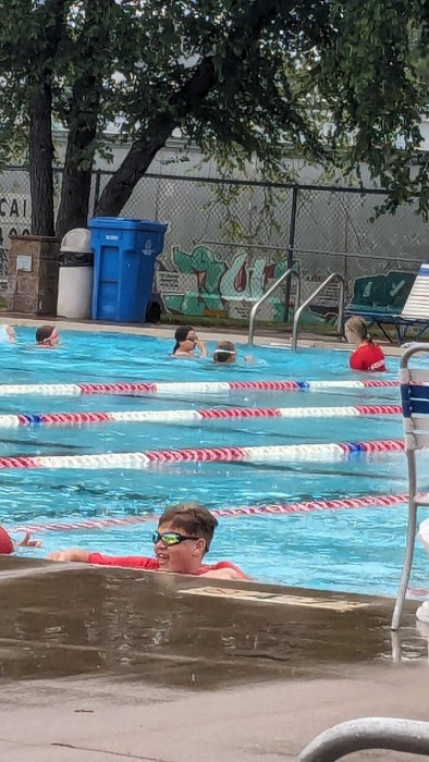 One more trip to the pool to finish off the week. We met Jonathan and his parents at the pool Sunday afternoon. This time Dad went swimming! He did the slide and the diving board. We stayed for a couple of hours. It was really hot, but the water felt good. And it was nice to be at the pool when there wasn't much of a crowd.