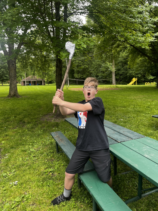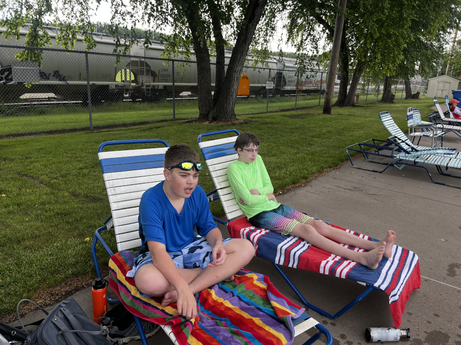 The second day of swimming was less nice - only about 63 degrees and it was raining. Grandpa Al and Grandma Wynne came over to take me to my lesson because Mom had some doctor appointments. The doctors were looking at her throat to see if there is a problem with her swallowing. After lunch, we went to Recess. It was just me and Jonathan, and we made some weapons.