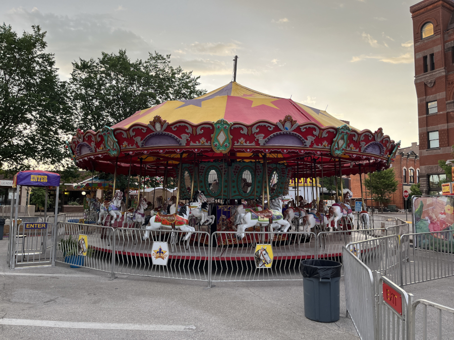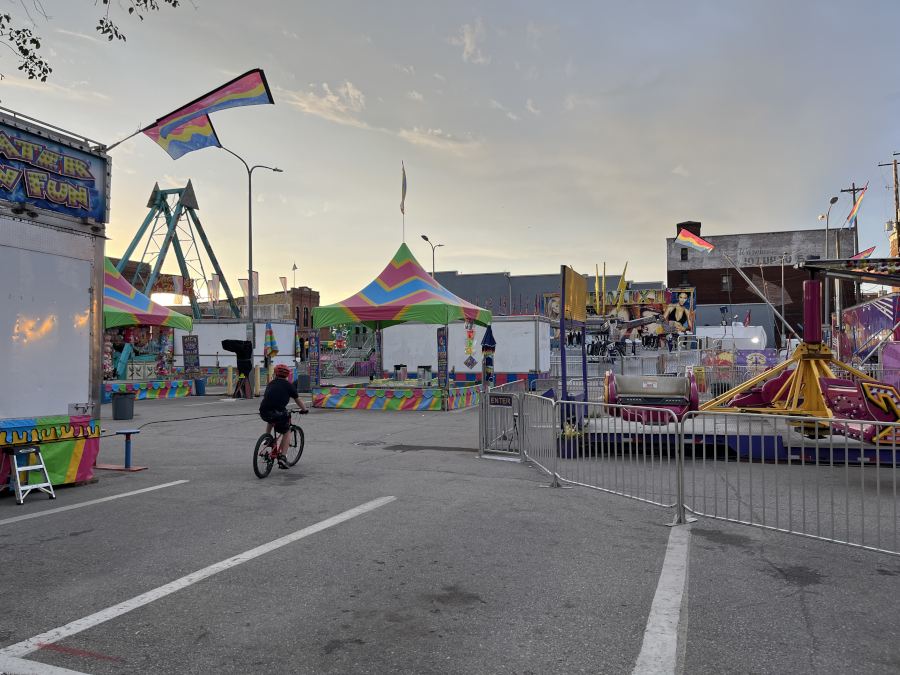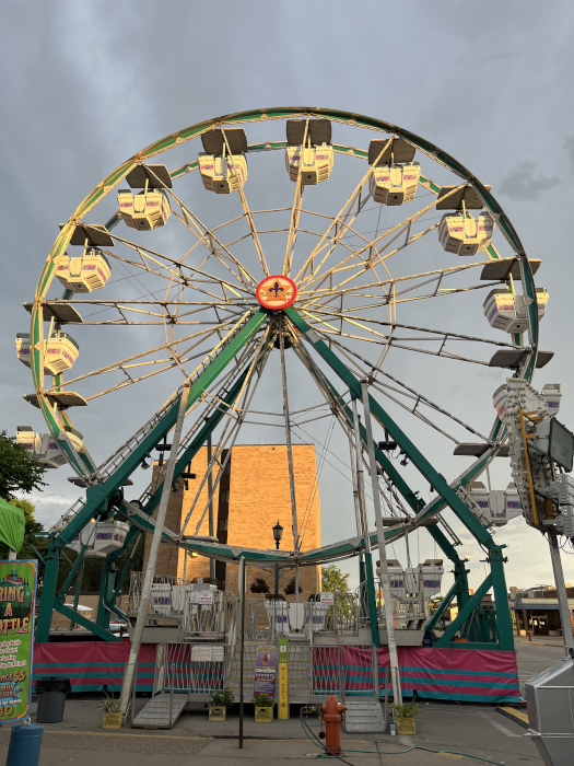 Dad and I took an early morning bike ride to beat the rain. We left the house at 5:45 AM - no one was out. We rode downtown to see the carnival rides and to check out the river. In the afternoon we watched a movie. Well, the first part of a really long movie.