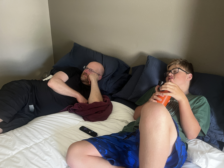 Mom had to go off her old Crohn's medicine, and her new one had to start with an infusion. Dad went with her to do that on Friday. I had the day off from everything, even swim lessons - summer vacation!