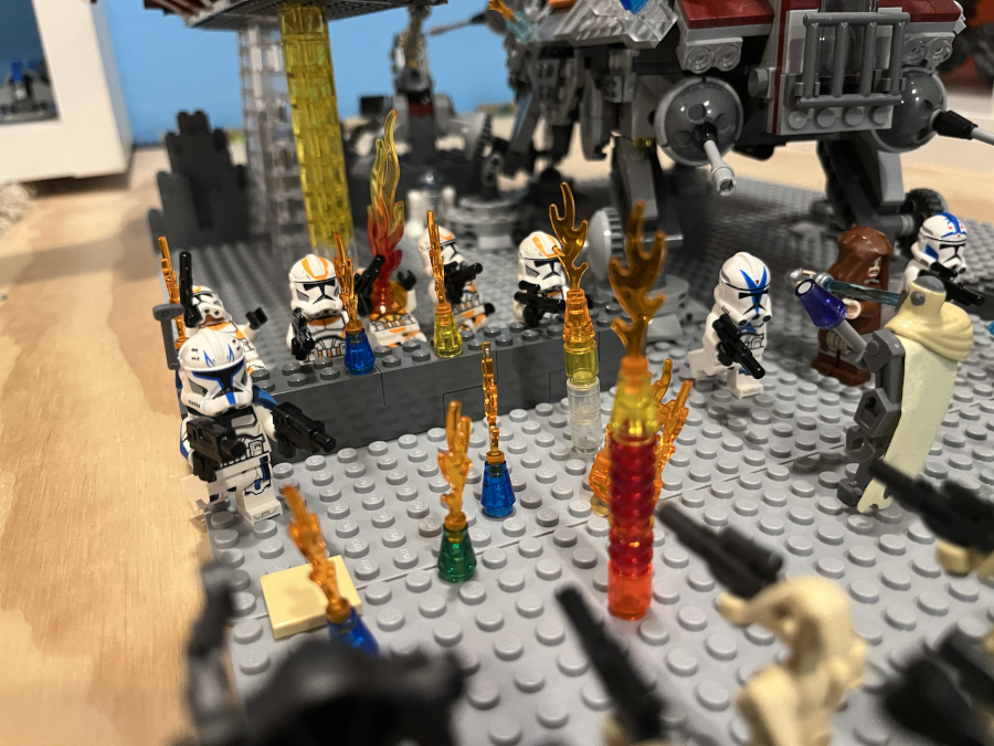 Obi-Wan and the Republic versus General Grievous and the Separatists.