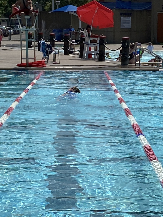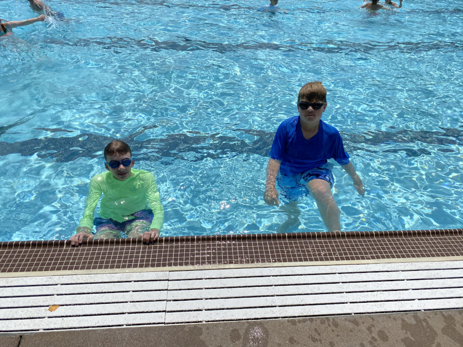 On Sunday, I mowed the lawn, and Mom and I went to the pool to meet Caroline, Jonathan, and Julia. It was Mom's first time out and about since the surgery.