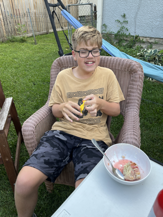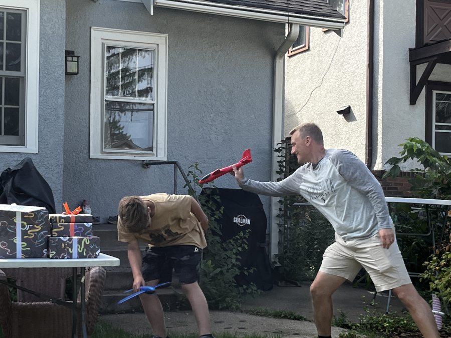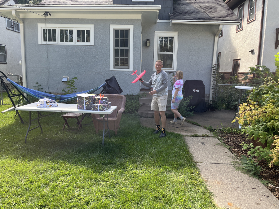I got a Sand trooper, and another Senate Commando. It was still raining when we left BAM. Dad and I went to pick up Mom from the hotel, and then we went to Freya's house for supper and presents and cake. The rain had stopped by then, the sun came out, and it was a really nice night to hang out in the back yard.