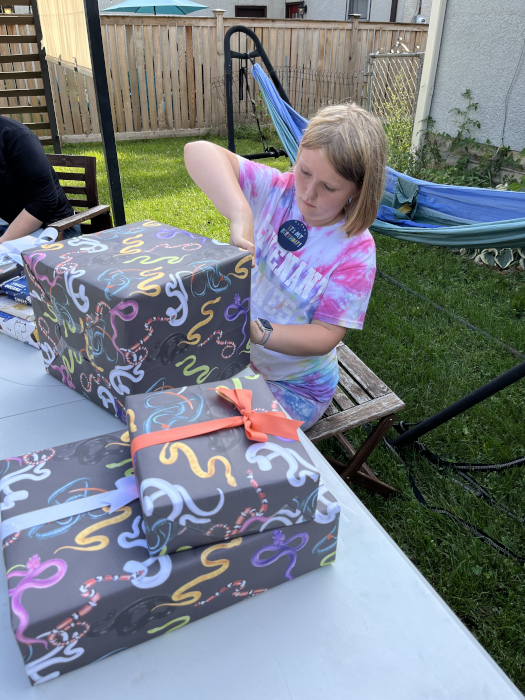This week we celebrated Freya's birthday! First, though, we went swimming with some friends: my last trip to the pool this summer (it closes this weekend). The big fun started on Wednesday. We did so many things I love to do that Dad wondered if this was my birthday week or Freya's. This week and last week were our summer vacation, so it makes sense it was time to "treat yourself!" (Like Tom and Donna from Parks and Rec.)