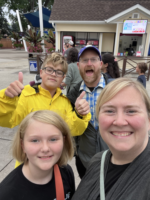 Staying in the hotel means hotel breakfast! They had waffles, but we didn't get to make them. Dad was happy they had oatmeal. After eating, we got ready and Dad and I went to meet Freya, Josh, and Kara at the amusement park. Our hotel was only 20 minutes away, so it was much easier than the 2.5 hour drive from home we've done all the other times this summer. Mom stayed at the hotel and worked on our next big adventure.