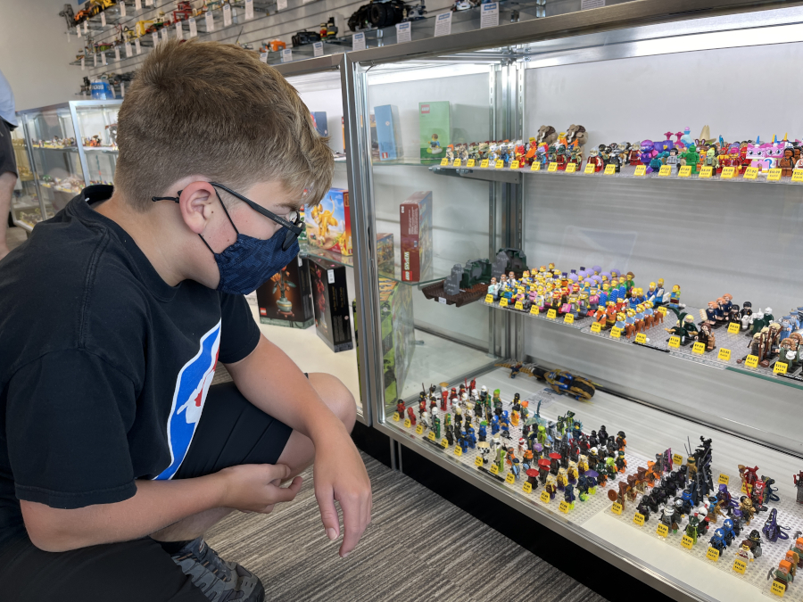 We all had eye exams first thing in the morning. Then we packed up and headed to GG and Grandpa Kevin's to pick up some presents for Freya. We then went on to our hotel, with a stop at a Bricks and Minfigs we had never been to before. After we checked in, we went to the LEGO Store for some more LEGO fun.