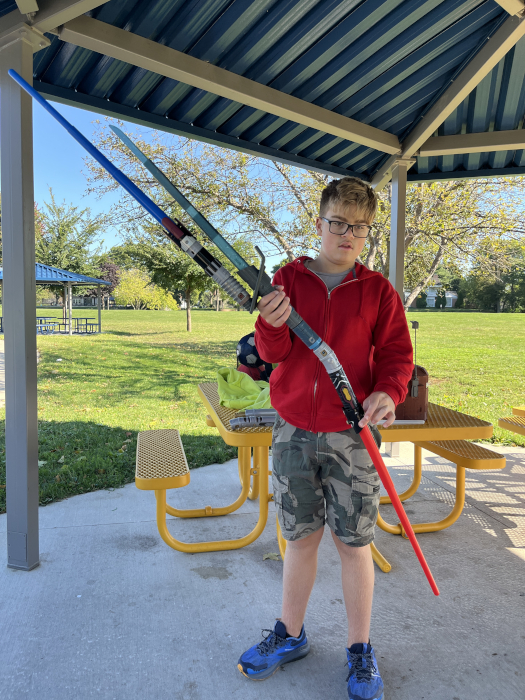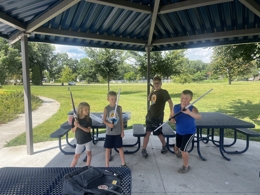 Sunday we met Jonathan's family at the park. Jonathan and I played with lightsabers, Mom and Caroline talked, and Dad and Ned walked around the lake.