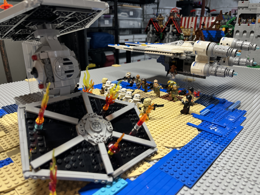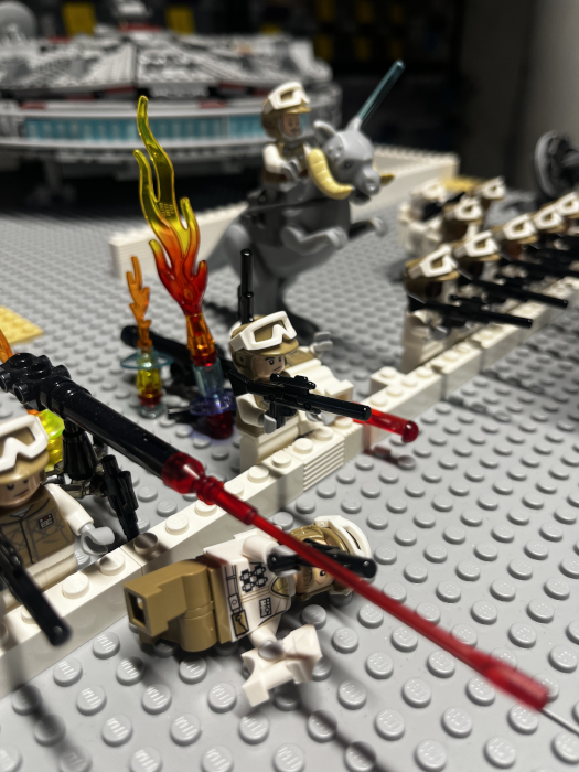 A battle on Scarif, from Rogue One: A Star Wars Story.