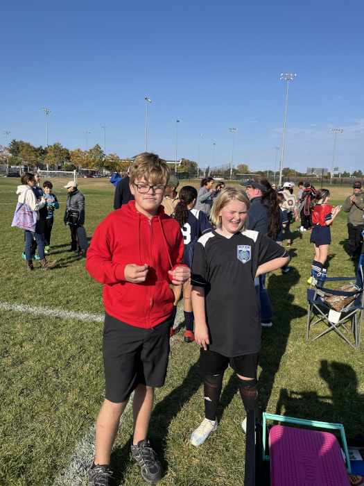 Me with Freya after the game. It was close, 1-0, but her team lost.