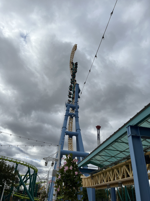 Later in the day we went to a part of the park I hadn't really been to before to see if the Steel Venom ride was working. The crew was doing some maintenance, so we waited around for them to finish and tried some rides that were new to me.