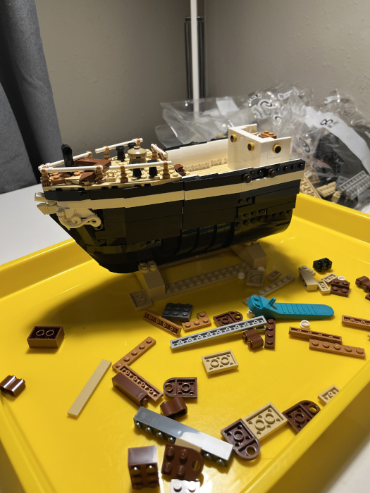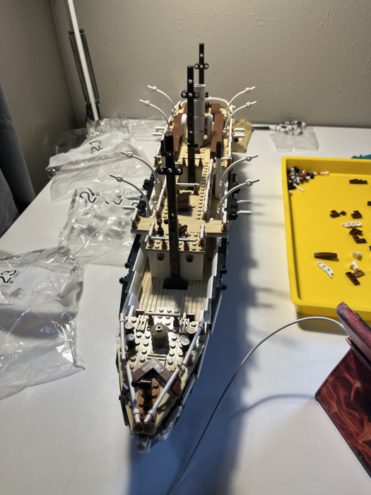 Saturday morning I started building the Endurance. I work for nine hours and only took a break to eat lunch. Dad helped with the rigging, but I did the rest myself.