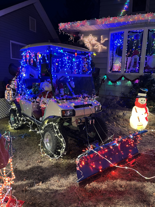 I don't know what's more interesting: the lights on this thing, or that it's a golf cart with a snow plow.