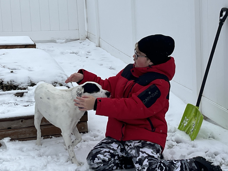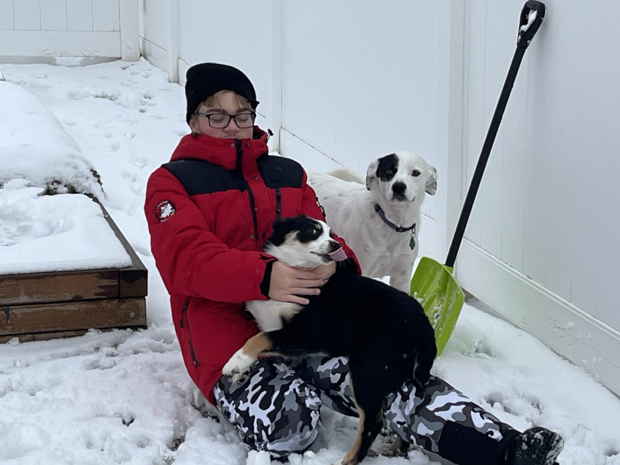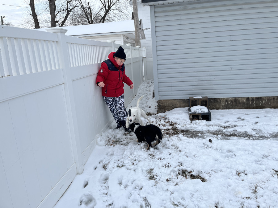 I was enjoying another day of freedom from school, Mom was finishing baking and packing up treats, and Dad took the day off to help out and get some other things done around the house. And then we had some guests. Nick and Jessica brought over their pups for a visit! And Jonathan, Caroline, and Ned came by so Jonathan and I could exchange gifts.