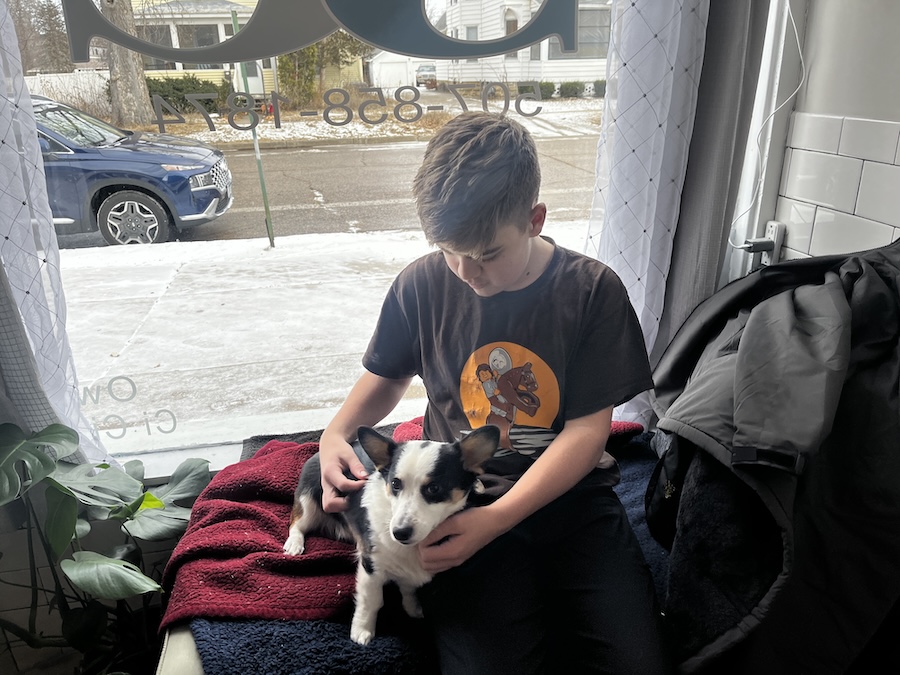 Grandpa had to clean up some of Loki's fur, which got all over me, as it always does.