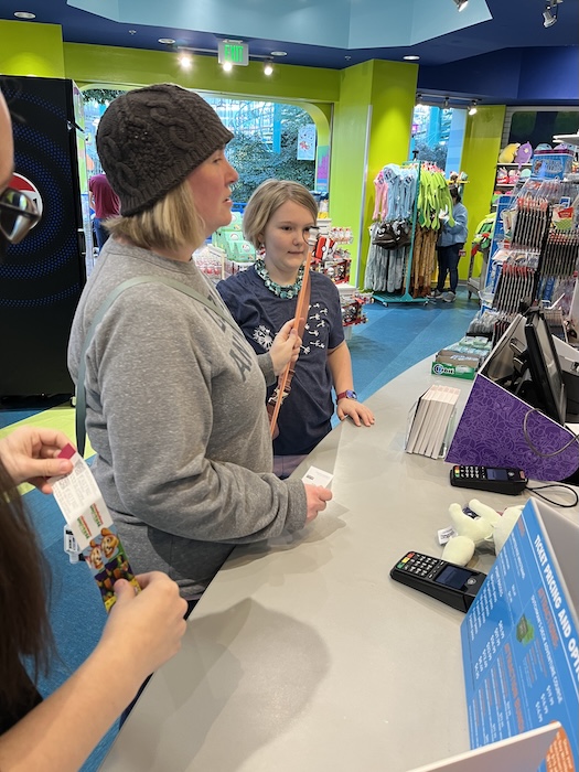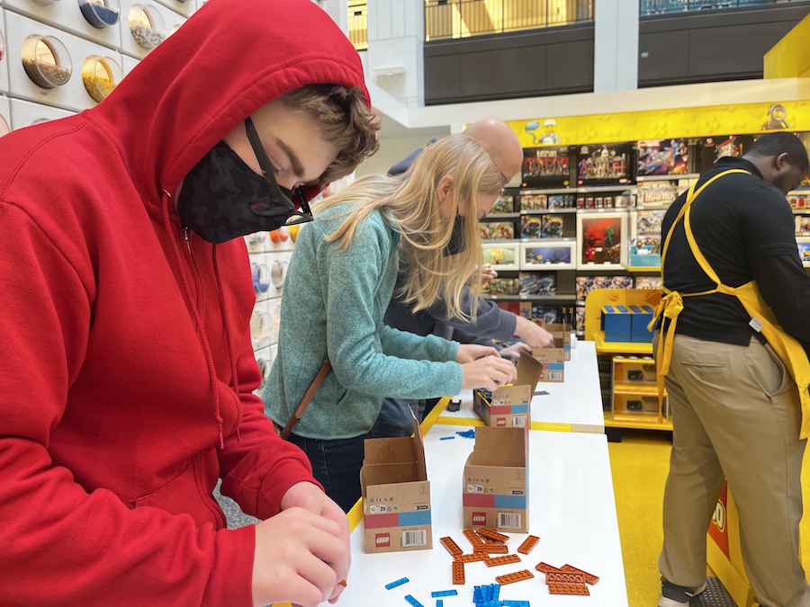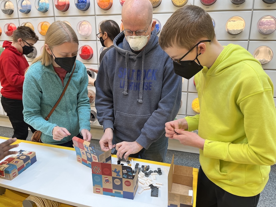 We had some passes for the aquarium, so I went with GG, Grandpa Kevin, Freya, Josh, and Kara. It's been a few years since I've been there. Mom and Dad had some free time to shop with their own agenda. And guess where they ended up? The LEGO Store - they built two more boxes because some masonry brick got added to the pick-a-brick wall.