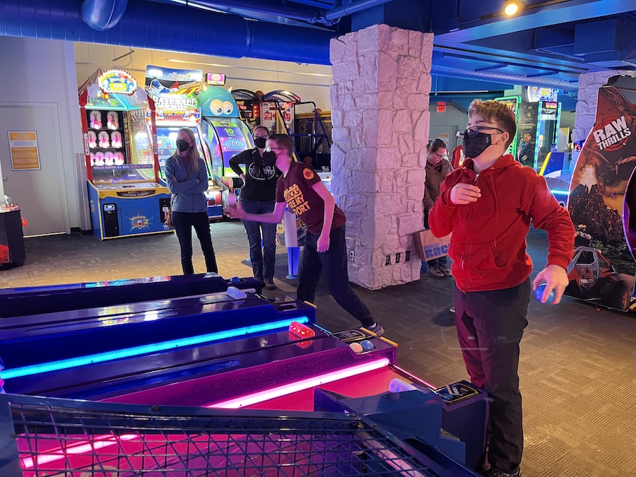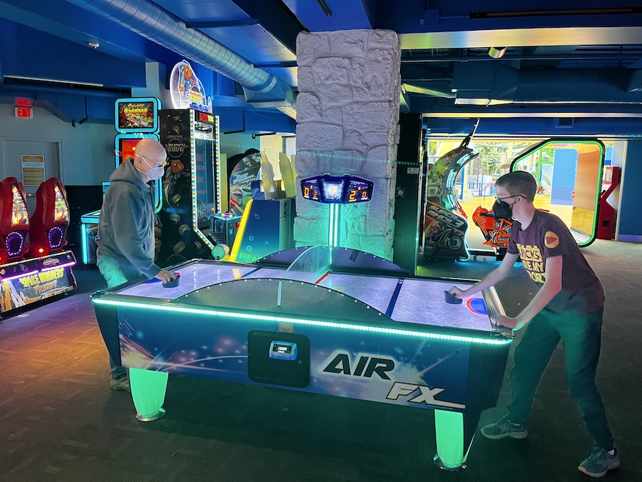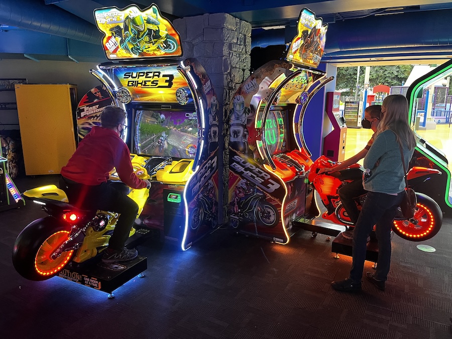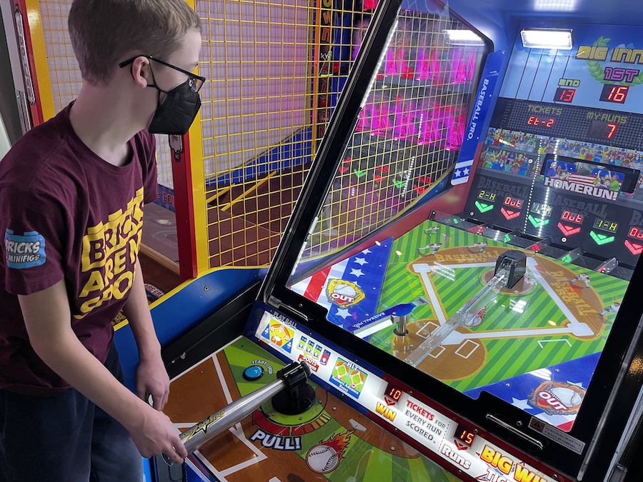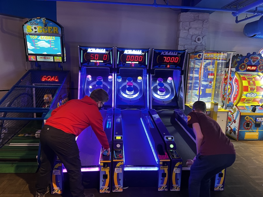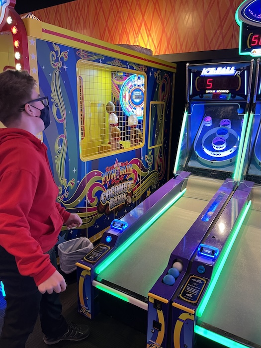 Jonathan was not a fan of the roller coaster, and he was okay to wait while I went on a different ride - the skateboard. But, I forgot to take off my glasses...and they flew off at the top of the ride! We tried to figure out where they might have landed, but no luck. The ride operator called the maintenance crew and they found the glasses much farther away than any of us thought they would be. And they weren't even damaged! That was almost a very expensive mistake.